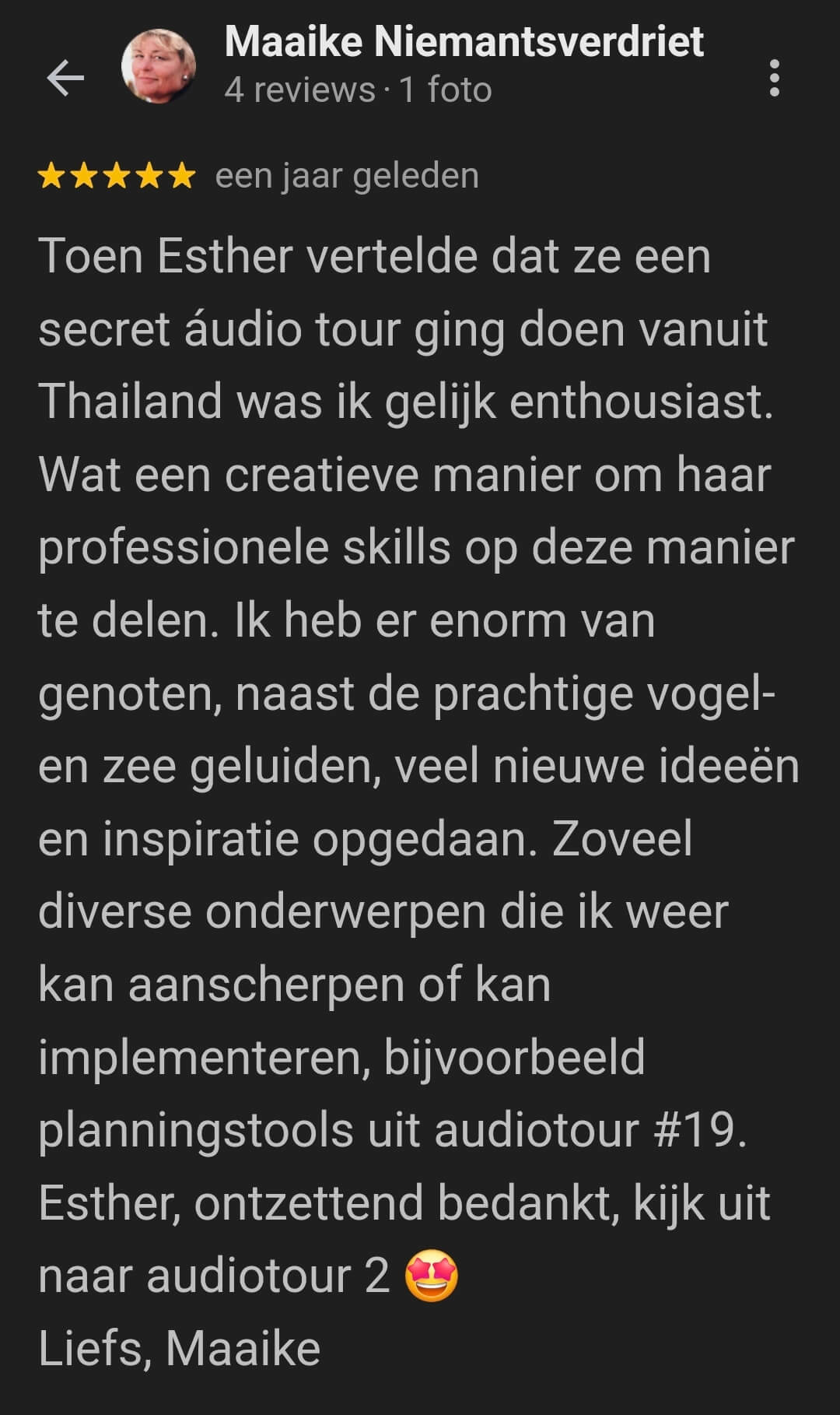 Dit is wat anderen over de Secret Audiotour en ‘Content’ zeggen: